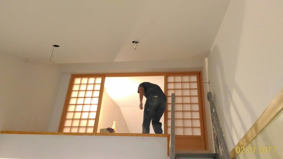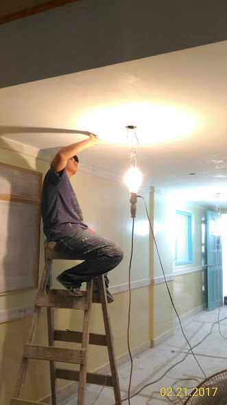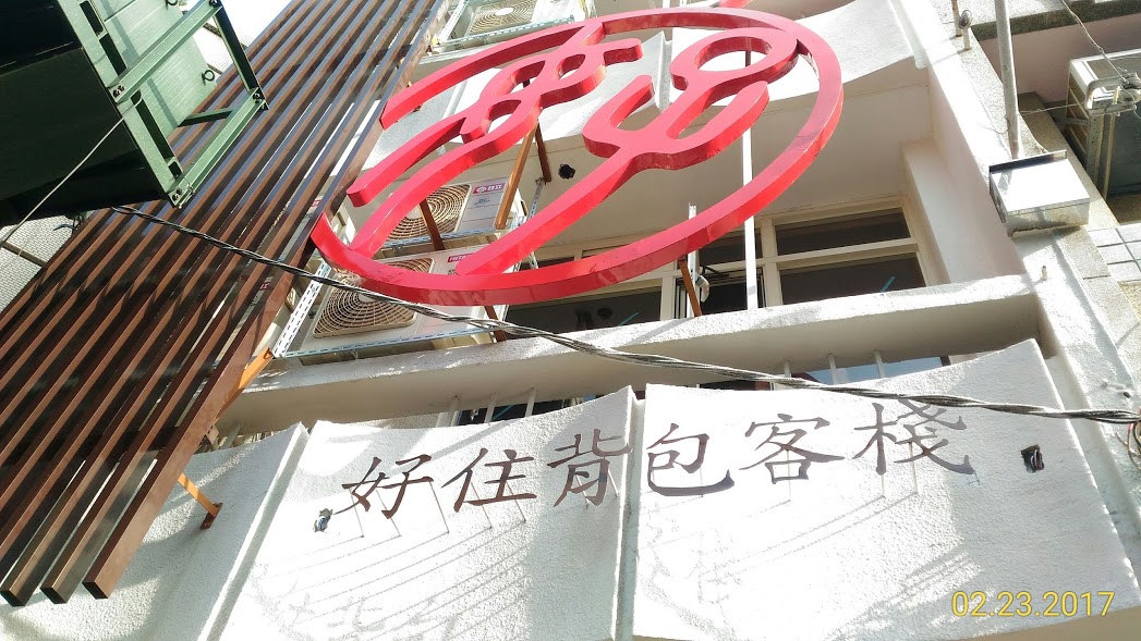 文字跟陽光相互輝映在白色的石頭漆牆面上